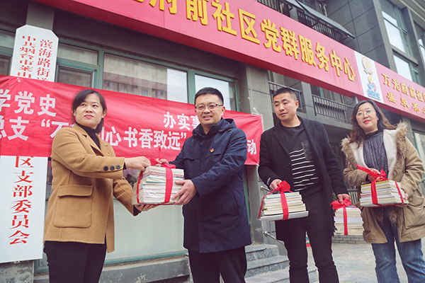 zui后,孫承鵬同志表示,希望以“不忘初心·書香致遠”圖書捐贈活動為契機,幫助萬光府前社區的居民拓寬視野、啟迪思維,培養“好讀書、讀好書”的習慣,切實體會到讀書的好處;同時,進一步加強黨總支與社區的合作與交流,增強互動。
