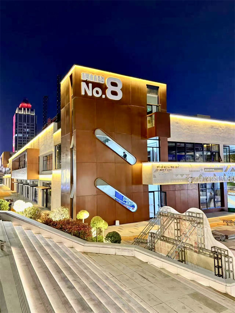 桐林路8號原為青湖電子工業廠房(已有30年歷史)總占地面積約27畝,地處煙臺萊山區核心,配套完善,交通便利,人口密集。2024年正大公司啟動項目建設,先后投資約1億元,通過拆除圍墻、結構加固、外保溫裝修、亮化提升等現代工藝,成功轉型為特色商業文化綜合體。